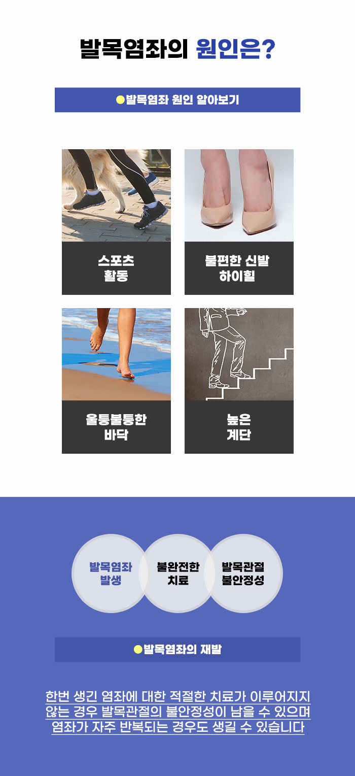갑작스럽게 생길 수 있는 외상 사고로 교통사고 외에도 몇 가지를 더 알아보자면, 발목염좌가 있다고 합니다. 발목이 꺾이거나 뒤틀리며 생기는 발목염좌는 일상에서 흔하게 생길 수 있는 손상 문제 중 하나인데요, 교통사고 외에도 외상으로 인한 통증이 있다면 이후 후유증이 남을 수도 있기에 꼼꼼한 대응을 할 수 있었으면 합니다.