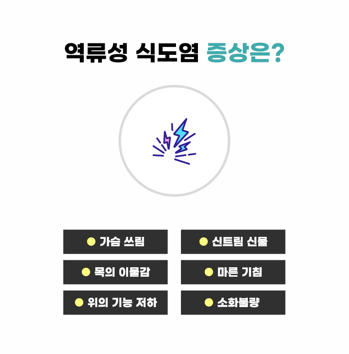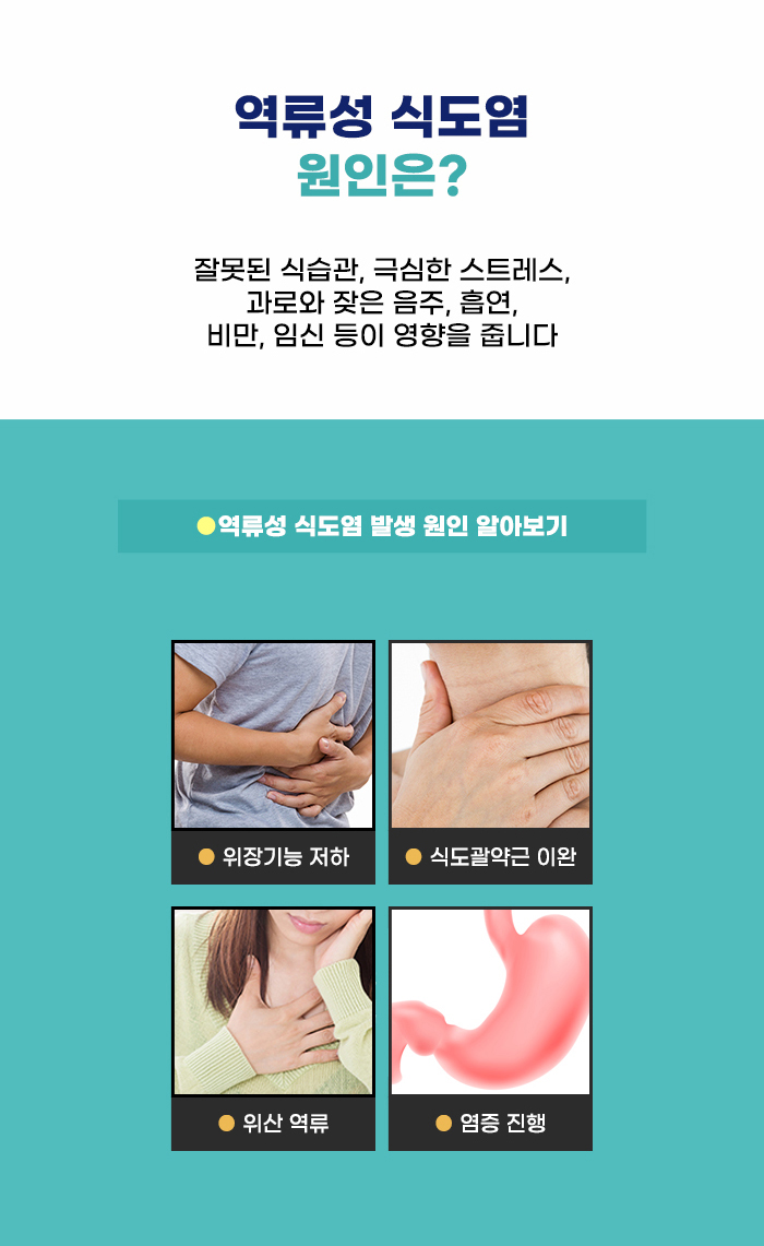 이 협착부에 있는 하부식도괄약근은, 음식이 지나가야 할 때는 열리고, 음식이 지나가지 말아야 할 때는 닫혀있어야 합니다. 그런데 어떤 이유로 이 하부식도괄약근이 약해지면서 느슨해지고, 닫혀있어야 할 때도 열릴 수 있는데요, 위에 있어야 하는 음식물, 위산, 펩신 등은 강한 자극을 줄 수 있습니다. 식도는 이런 자극적인 위산 등의 물질에 대항할 수 있는 방어기제가 없는데요. 그렇다 보니 염증이 생기고 통증이 생길 수 있다고 합니다.