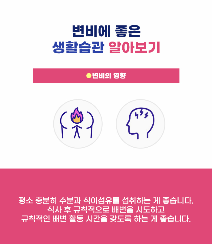 배변 시에 너무 무리하게 힘을 주어 배변해야 하는 경우, 대변이 너무 딱딱하고 배출이 어려운 경우도 변비로 보기도 하며, 원활한 배변을 위해서는 약을 먹어야 하는 경우, 시간이 너무 오래 걸리는 경우에도 변비로 보기도 합니다. 보통 3~4일에 배변 활동이 1회 미만인 경우를 변비로 보는데요. 매일 배변을 하지 않아도 2일 정도에 한 번씩 배변을 하며 변비로 인한 불편함을 겪지 않는다면 변비로 정의하지 않을 수도 있습니다.