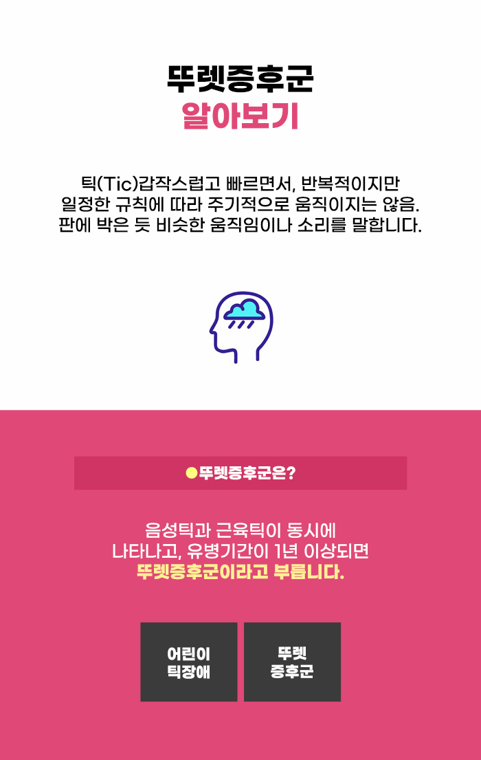 틱장애 증상이 1년 이상 이어지고, 복합적인 증상이 나타나게 되는 경우 뚜렛증후군이라고 합니다. 과거에 비해 틱장애와 뚜렛증후군에 대해서 알려지고 있지만, 아직까지 명확하게 이해하는 분은 적은 것 같은데요, 틱장애 증상이 뚜렷해지게 되면서 주변의 원치 않는 주목을 받기도 하고 오해를 받기도 합니다.