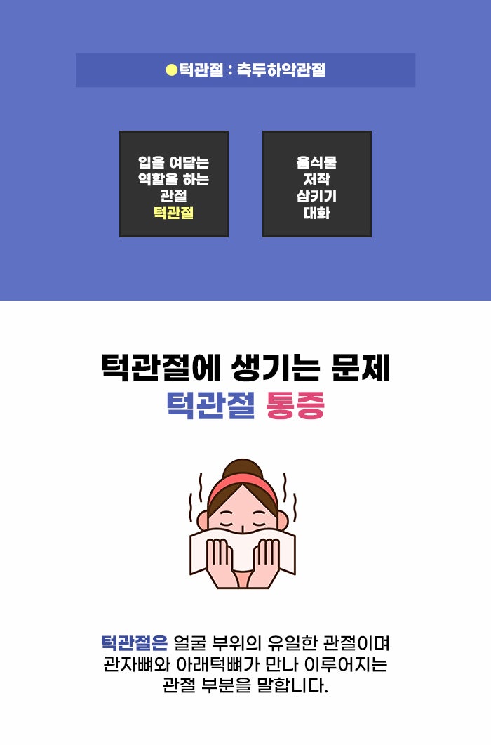 그리고 목과 얼굴 주변 근육이 긴장하면서 두통이 생기기도 하고 피로감에 시달리기도 합니다. 입을 충분히 열기 어려운 개구장애가 생길 경우 또 다른 고민이 생기기도 하는데요. 칫솔질을 할 때 어금니 안쪽까지 깨끗하게 닦는 게 중요한데, 입을 열기 어렵다 보니 치아 관리를 청결하게 하는 것에도 어려움이 따를 수도 있습니다.