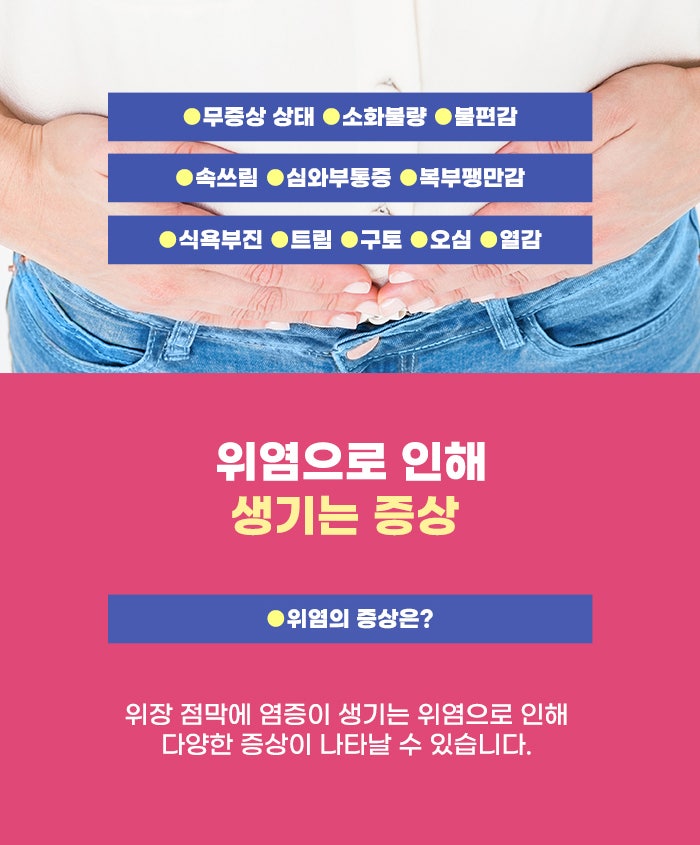 문제가 생길 경우 통증을 통해 알고 대처할 수도 있습니다. 그런데 위는 신경 세포가 피부처럼 분포한 상태가 아니다 보니, 위축성 위염, 염증 상태가 되더라도 통증을 잘 느끼지 못하는 상태일 수도 있습니다. 그리고 특별한 증상을 느끼지 못하는 무증상 상태일 수도 있다고 합니다. 일반적으로 위염이 있을 때 생기는 증상으로는 복통, 속쓰림, 더부룩함, 복부팽만, 구역감 등이 있다고 하는데요. 이런 증상이 없더라도 위염일 수 있다고 하니 정기적인 건강 점검이 중요하겠습니다.