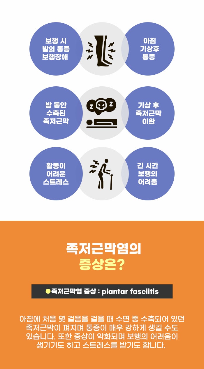 내 몸을 하루종일 싣고 움직이는 발! 그렇다 보니 발이 피로하면 몸 전체가 지치고 피로해지는 것 같은데요. 요즘따라 이상하게 발이 더 아프고 저린 느낌, 뻣뻣한 느낌을 받는 것 같다면 어떤 문제인지 알고 싶을 수 있습니다. 이 페이지를 통해서 발이 아플 수 있는 족저근막염 문제에 대해서 알 수 있었으면 합니다.