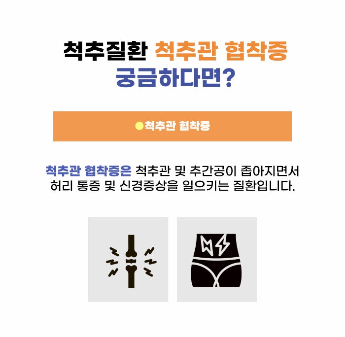 척추관은 척수가 지나가는 통로인데요. 척추 가운데에는 관 모양의 빈 공간이 있으며 이 부분을 추간공이라고 합니다. 형성된 추간공의 척추관에 척수가 지나가는 만큼, 이 공간이 어떤 이유로 좁아지거나 이상이 생길 경우 척수에도 문제가 발생할 수 있다고 합니다. 뇌와 말초 기관을 이어주는 중요한 신경 다발이 척수인 만큼, 척추관이 협착되면서 신경 증상과 강한 통증이 생기기도 합니다.