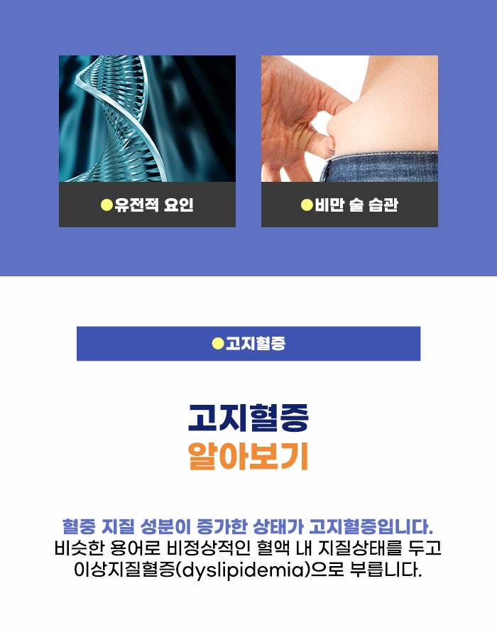그렇기에 고지혈증 위험군에 있다는 말을 듣거나, 현재 고지혈증 상태라는 말을 듣더라도 무시하고 전처럼 생활하는 경우도 적지 않습니다. 내 건강 이상이 직접 느껴지지 않기에 건강 관리를 하는 게 더욱 어려울 수 있는데요. 그러나 고지혈증으로 인한 합병증이 생길 경우 큰 어려움에 처할 수도 있다고 합니다. 고지혈증은 유전적인 요인이 작용할 수도 있으며 비만, 당뇨병, 술 등의 영향이 있을 수도 있다고 합니다.