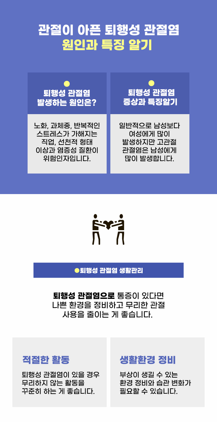 추간판 탈출증으로 인해 허리가 아픈 경우도 있지만 퇴행성 관절염으로 인해 허리가 아픈 경우도 있는데요. 요통이 생기는 이유는 다양할 수 있기에 문제를 바르게 파악하는 게 올바른 대응을 위한 첫걸음이 되겠습니다. 추간판 탈출증은 관절 연골이 소실되고 퇴행성 변화가 나타나는 것으로, 뼈와 인대에 손상이 발생하며 염증, 통증으로 이어지는 질환이라고 합니다.