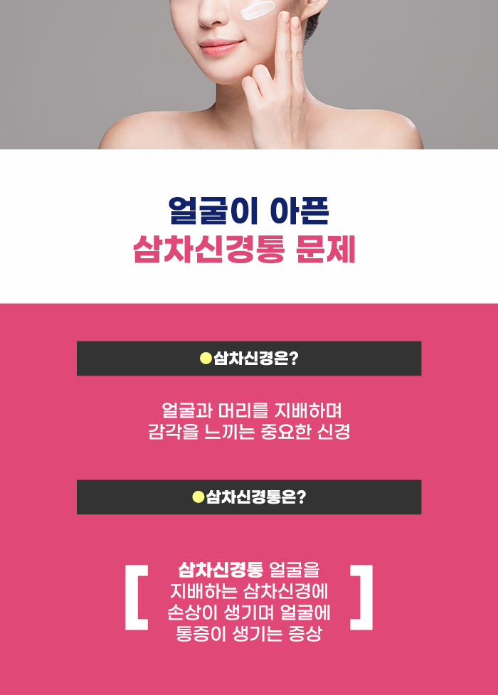 이 통증은 무시할 수 없는 아주 강력한 신호인데요. 그렇기에 통증은 내 몸을 지키고 위험에서 벗어나도록 하는 중요한 파수꾼이 되기도 합니다. 하지만 통증이 있을 경우 그 자체만으로도 많은 고통을 겪게 되는데요. 또한 통증 때문에 하고 싶은 일이나, 해야 하는 일을 제대로 하지 못하는 등 일상생활에서도 방해를 받을 수 있습니다. 이런 통증이 예민한 얼굴에 생길 경우에는 더욱 걱정될 수 있는데요, 얼굴에 통증이 생기는 질환으로 삼차신경통이 있다고 합니다.