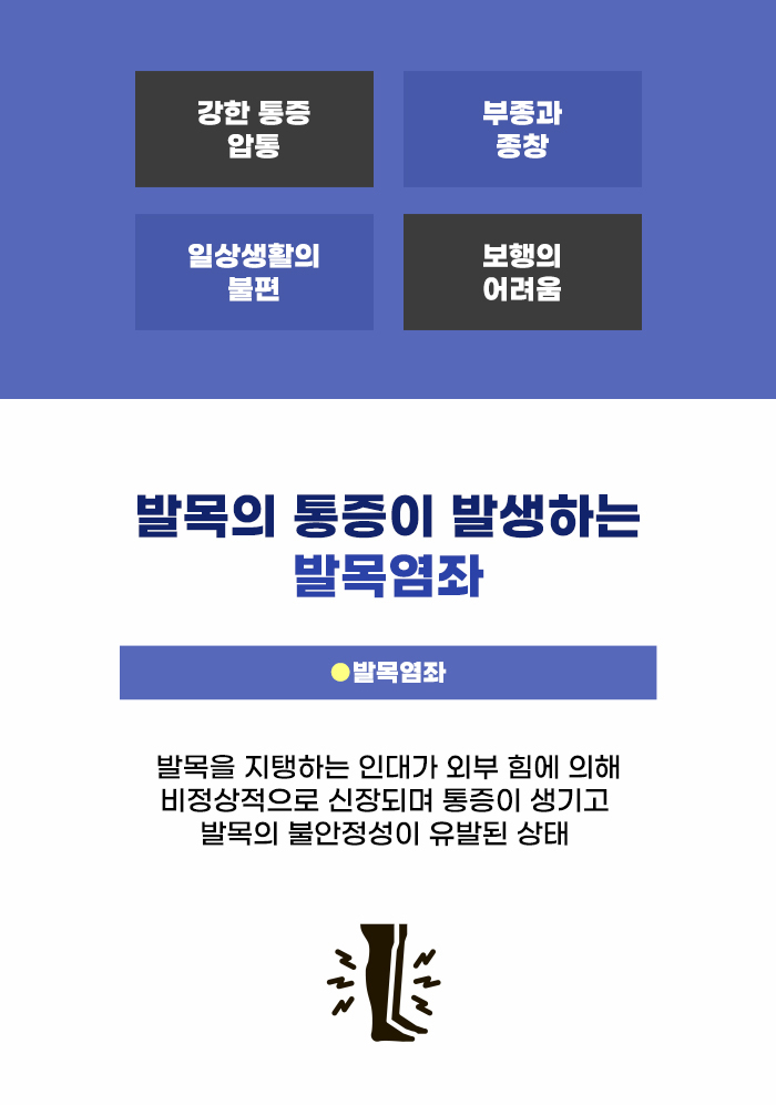 갑작스럽게 생길 수 있는 외상 사고로 교통사고 외에도 몇 가지를 더 알아보자면, 발목염좌가 있다고 합니다. 발목이 꺾이거나 뒤틀리며 생기는 발목염좌는 일상에서 흔하게 생길 수 있는 손상 문제 중 하나인데요, 교통사고 외에도 외상으로 인한 통증이 있다면 이후 후유증이 남을 수도 있기에 꼼꼼한 대응을 할 수 있었으면 합니다.