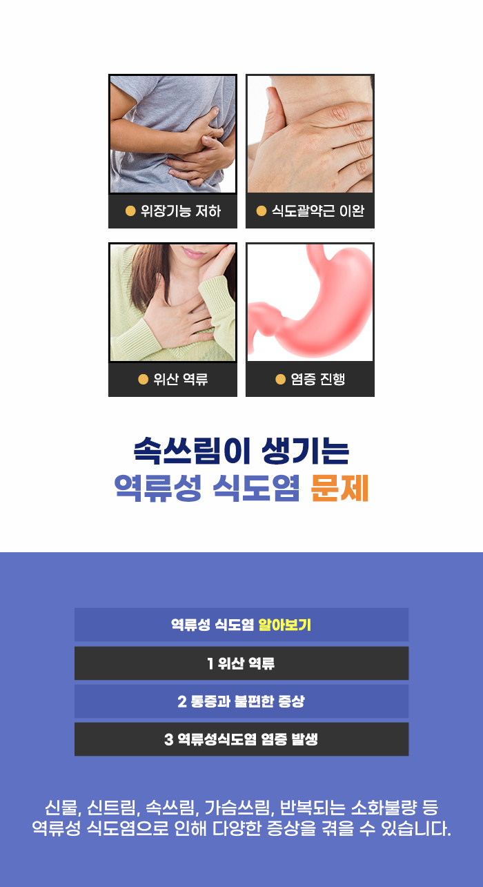 잘못된 음식 섭취는 다양한 위장장애 문제를 불러올 수도 있다고 하는데요, 위장의 기능이 약해진 상태에서 생기기 쉬운 문제로 역류성 식도염 문제가 있다고 합니다. 음식이 지나가는 통로일 뿐인 식도는 위처럼 위산, 펩신, 자극적인 음식의 공격을 이겨낼 수 있는 방어 수단이 없는데요.