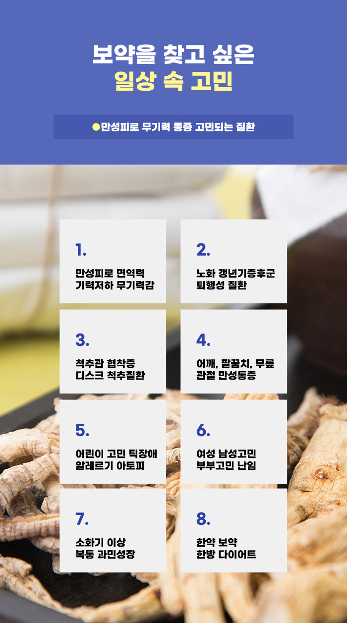 현재 천안경옥고 정보 알아보는 분 중에는 여름철이 되면서 더워진 날씨 속에 입맛을 잃은 분, 입맛이 없어지고 음식을 충분히 먹지 않게 되면서 기력이 약해진 분도 있습니다. 지금 위장장애로 인해 고민하는 분이라면 이 페이지를 통해 일상 속 고민을 만드는 위장장애, 소화불량, 배변 관련 장애 정보에 대해서도 알아보셨으면 합니다.