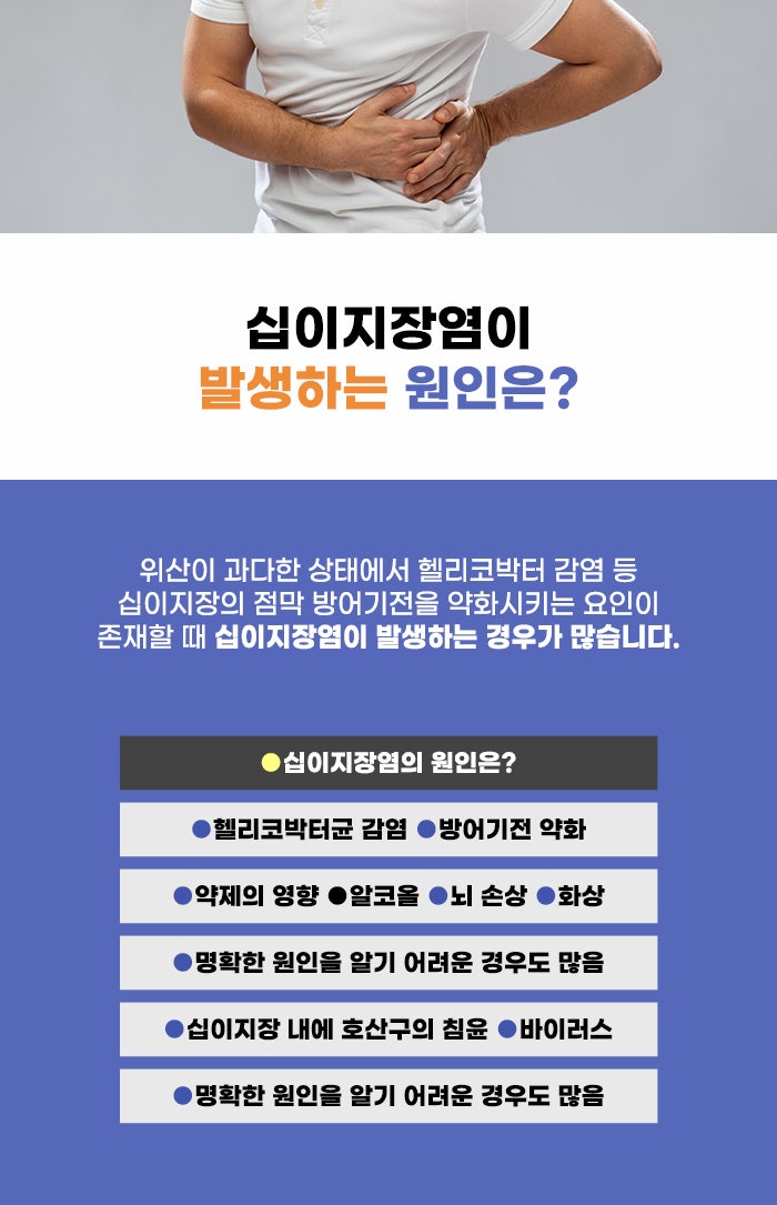 십이지장 궤양의 정의를 알아보자면 십이지장 점막이 결손되고 이런 결손이 점막하층 이하까지 발생하는 경우라고 하는데요, 십이지장 궤양의 원인을 더 알아보자면 흡연, 스트레스와 약제 문제, 그리고 악성종양 문제 등 다양할 수 있다고 합니다. 정상적인 위장의 상태를 벗어나고 위장의 소화 기능도 약해지면서 다양한 어려움이 생길 수도 있다고 합니다.