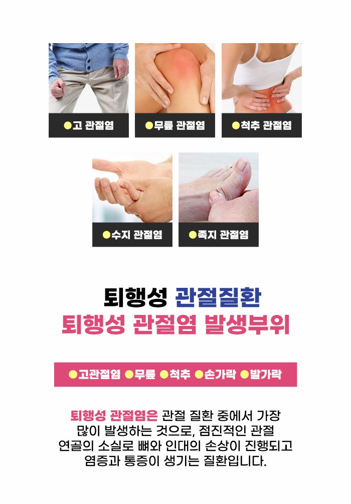 연골이 소실되고 관절에 염증이 발생하는 퇴행성 관절염은 여러 퇴행성 질환, 관절 질환 중 많은 분이 겪고 있는 질환입니다. 퇴행성 질환이라는 특성이 있다 보니 발병하는 연령대는 주로 중년 이후 연령이라고 합니다. 현재 우리나라는 100세 시대라는 말이 있을 정도로 고령화되고 있다고 하는데요. 평균 수명이 길어지면서 퇴행성 관절 질환으로 고통받는 분도 많아지고 있다고 합니다.