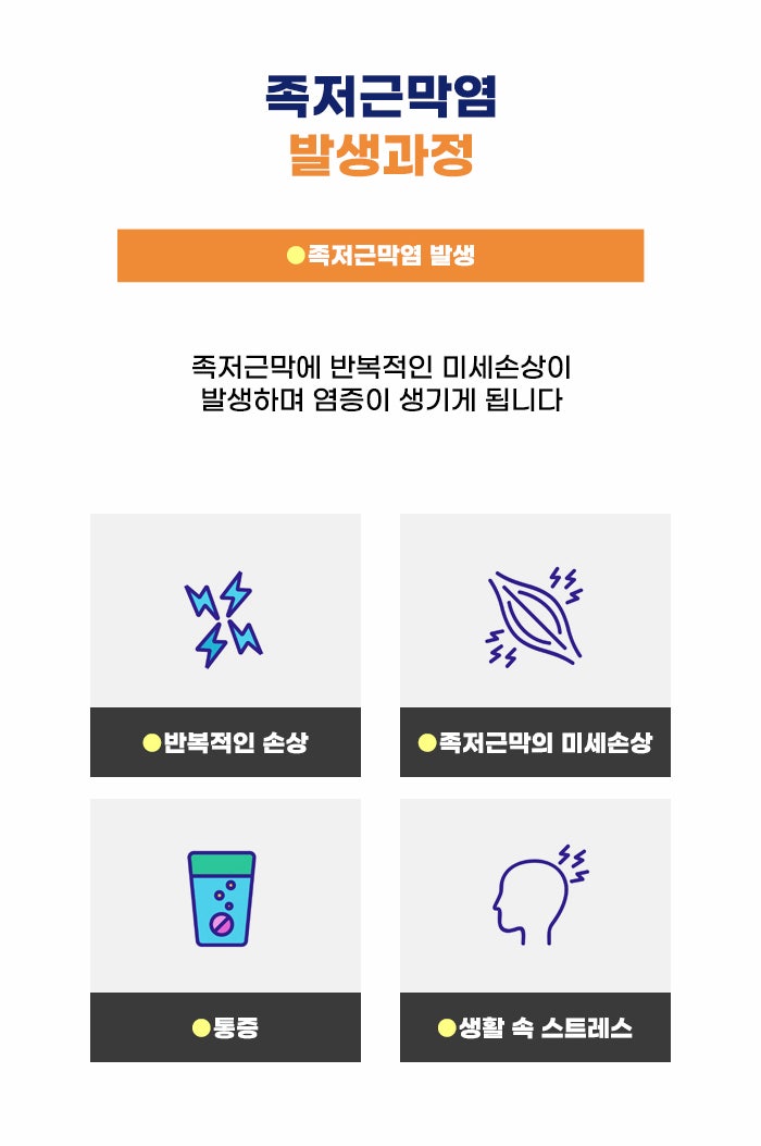 족저근막염은 반복적인 미세 손상에 의해서 생길 수도 있다고 하는데요. 선천적 요인, 후천적 요인 등으로 천안 쌍용동 한의원 고민되는 족저근막염의 발생 원인을 나눠볼 수 있습니다. 평상시에 운동을 하지 않다가 무리해서 발을 사용하는 경우 족저근막에 부담이 생기면서 염증이 발생할 수도 있다고 합니다.