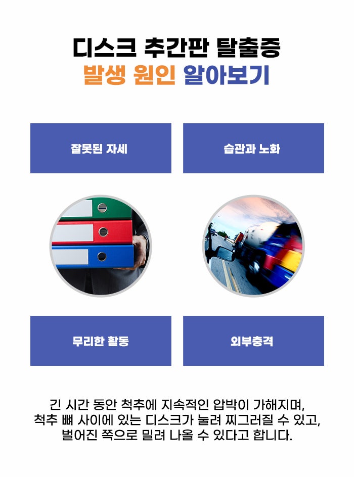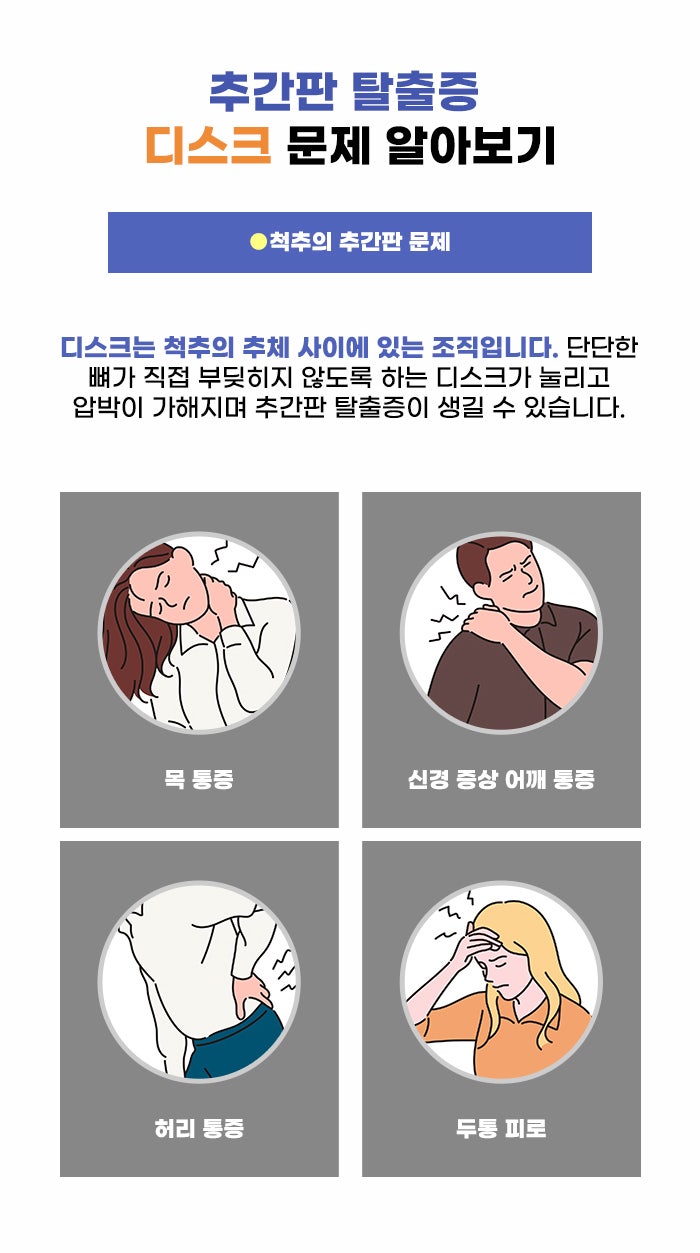 현재 골반 통증이나 신방동허리디스크 고관절 통증 문제가 걱정된다면 척추 건강에 대해서 알아야 할 수도 있는데요. 추간판 탈출증은 척추의 추체 사이에 있는 추간판에 과도한 압력이 주어지고 추간판 겉의 섬유륜이 찢어지며, 속의 수핵이 밀려 나오는 문제라고 합니다. 이런 이유로 신경이 자극을 받으며 통증이 생기고, 신경 증상이 발생할 수도 있다고 합니다.