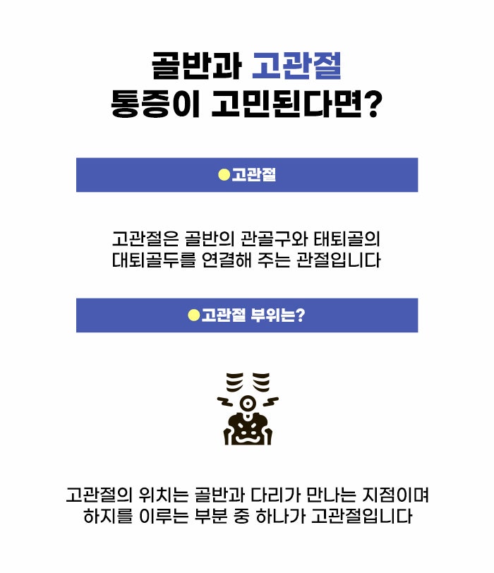 관절 건강은 아무 통증이 없을 때는 그 중요성을 알기 어렵습니다. 하지만 통증이 생기고 난 후에는 관절 건강의 중요성에 대해서 알게 되는데요. 특히 고관절의 건강은 더욱 그런 것 같습니다. 사람의 몸에는 수많은 관절이 존재합니다. 발가락, 손가락과 같은 작은 부분부터, 스스로 움직이기 어려운 관절, 자유의지를 갖고 움직일 수 있는 관절이 존재합니다.