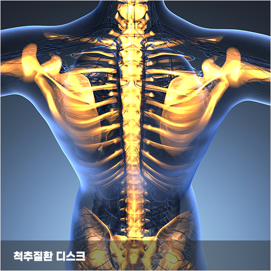 디스크는 다른 말로 추간판인데요, 척추의 추체 사이에 있는 부분이 디스크로, 이 디스크는 겉의 질긴 섬유륜, 그리고 내부의 수핵으로 나눌 수 있습니다. 디크스에 과도한 압박이 주어질 경우 섬유륜 부분이 찢기고 내부에 있는 젤리 같은 수핵이 밀려나올 수 있는데요, 이 수핵이 주변의 신경근을 자극하고 염증과 통증, 신경 증상 등이 발생하는 질환이 바로 추간판 탈출증, 디스크라고 합니다.