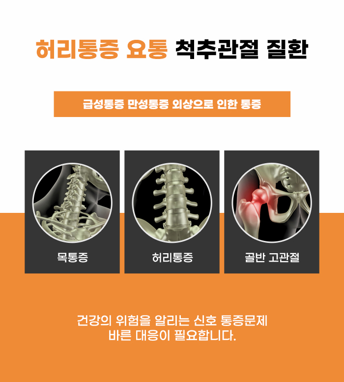 관절 부분은 내 몸을 자유롭게 움직이고 여러 활동을 하기 위해 매우 중요한 부분입니다. 그렇기에 관절에 통증이 생기게 되거나, 관절의 운동범위가 줄어드는 것 같은 이상이 생길 경우, 관절 건강에 관해서 관심을 가지는 게 좋은데요, 특히 허리, 척추는 몸의 중심이다 보니 이 부분에 이상이 발생할 경우 삶의 질이 빠르게 떨어질 수 있습니다.